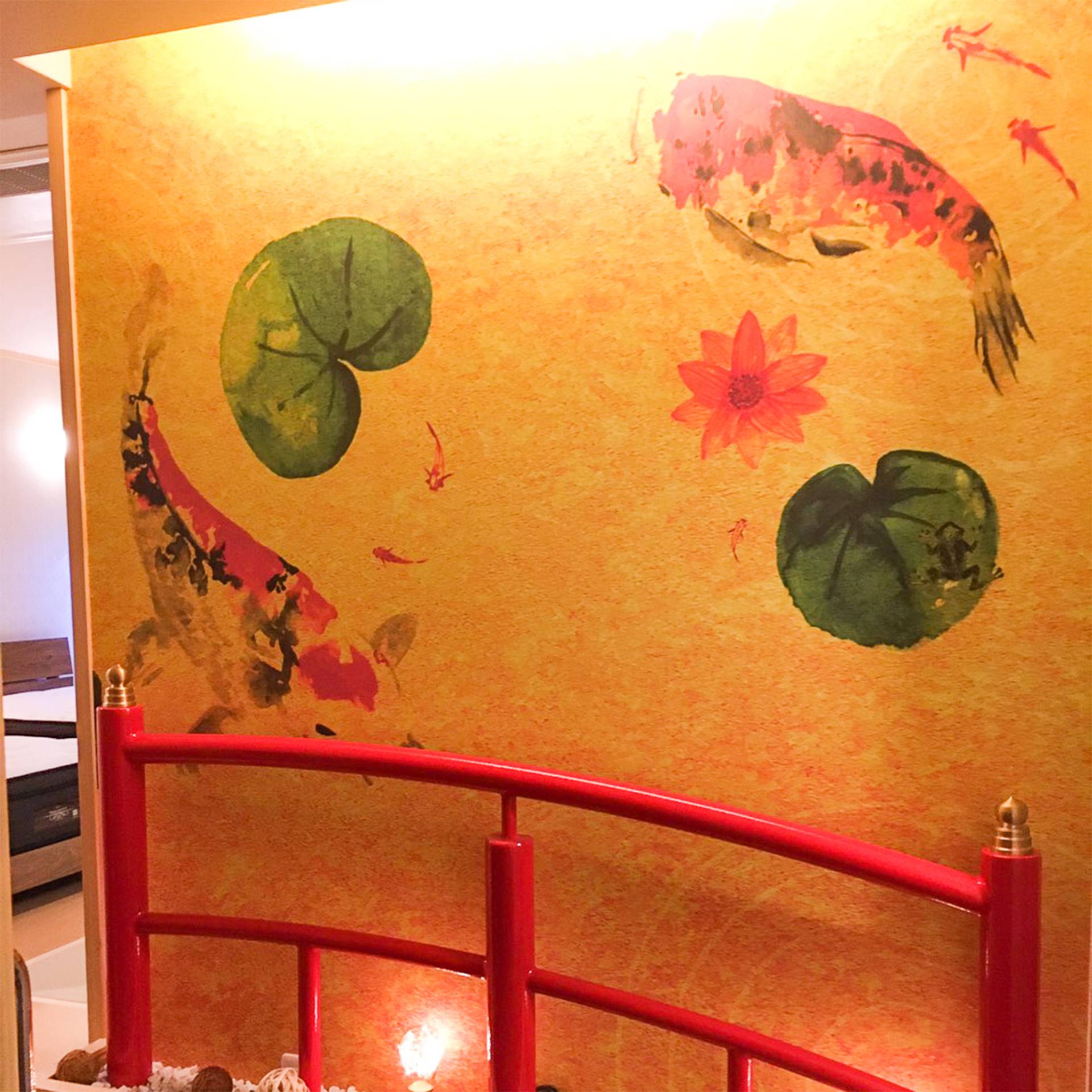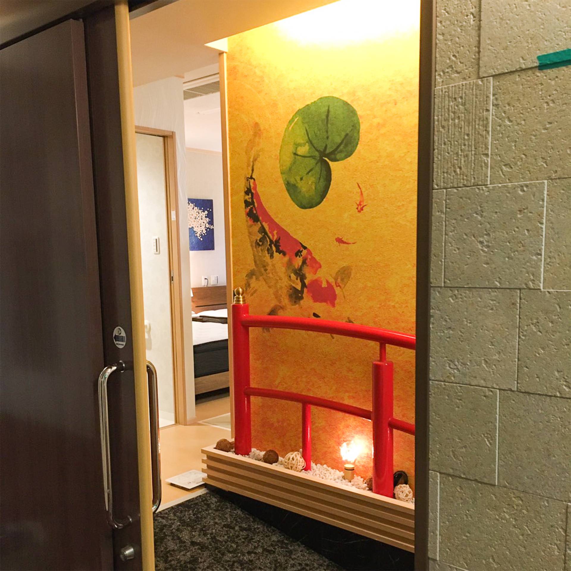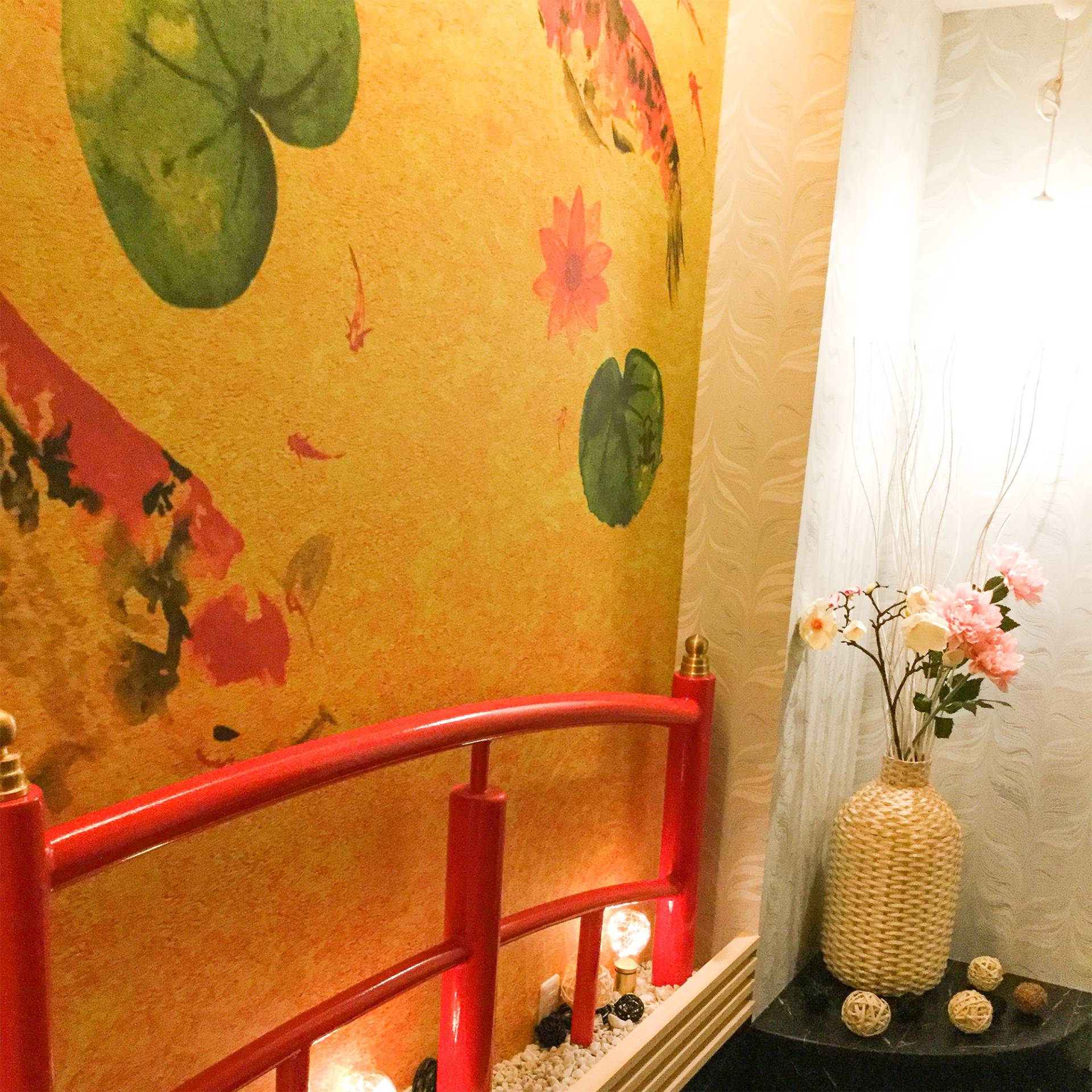 赤い橋のインテリアがとてもマッチしていて、素敵な空間となっております。