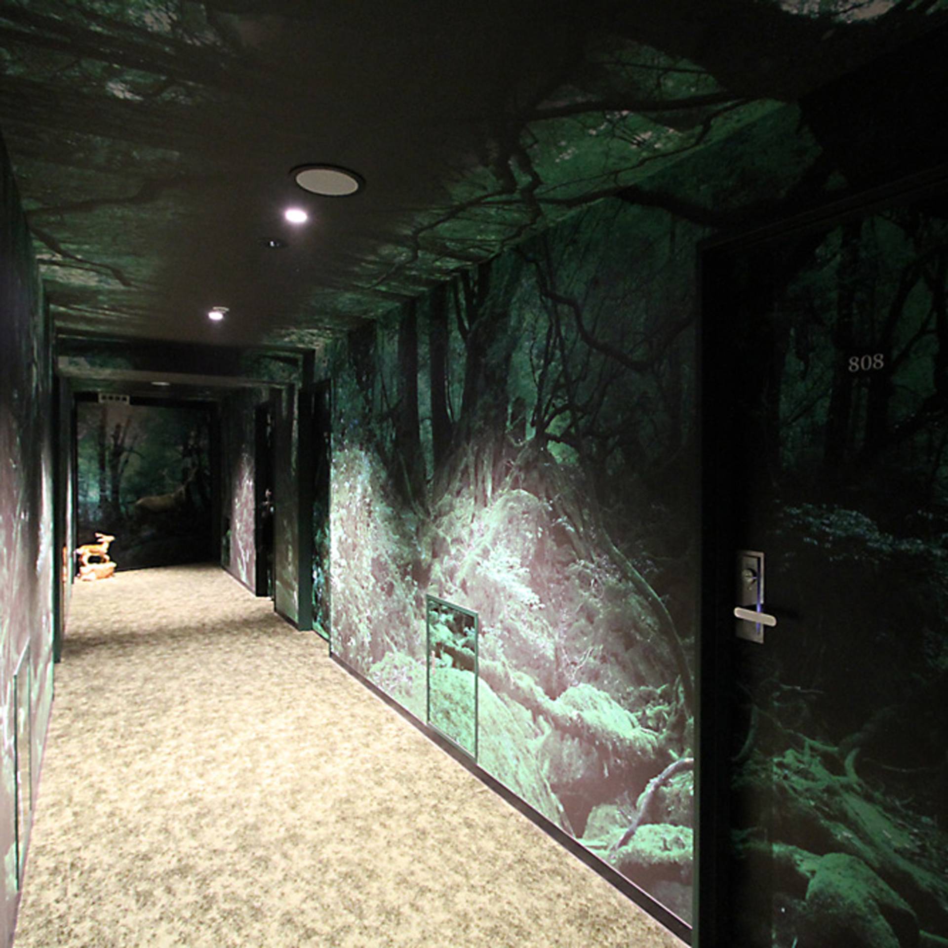 「森羅万象」をテーマにホテルの廊下共用部分をトータルコーディネートデザイン。