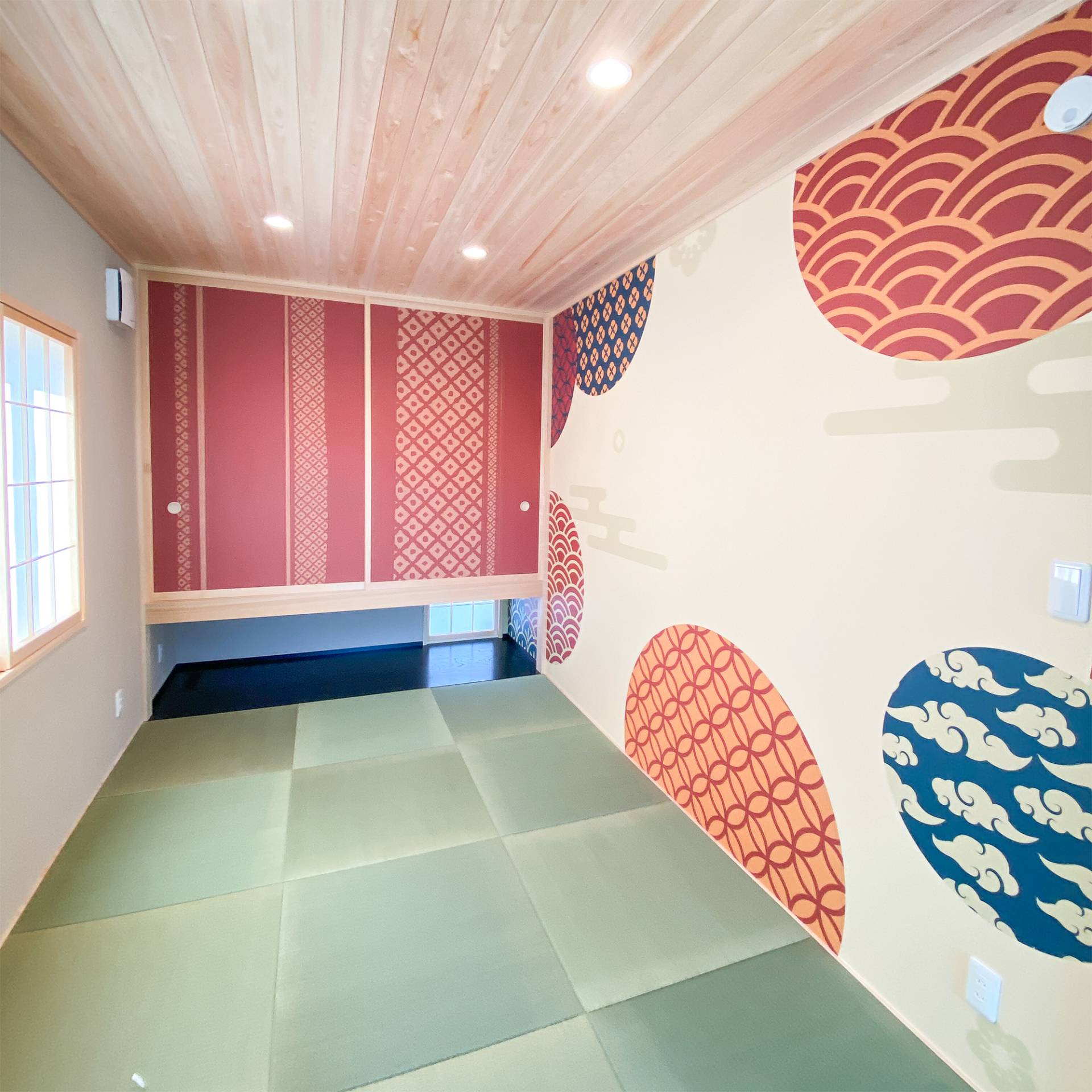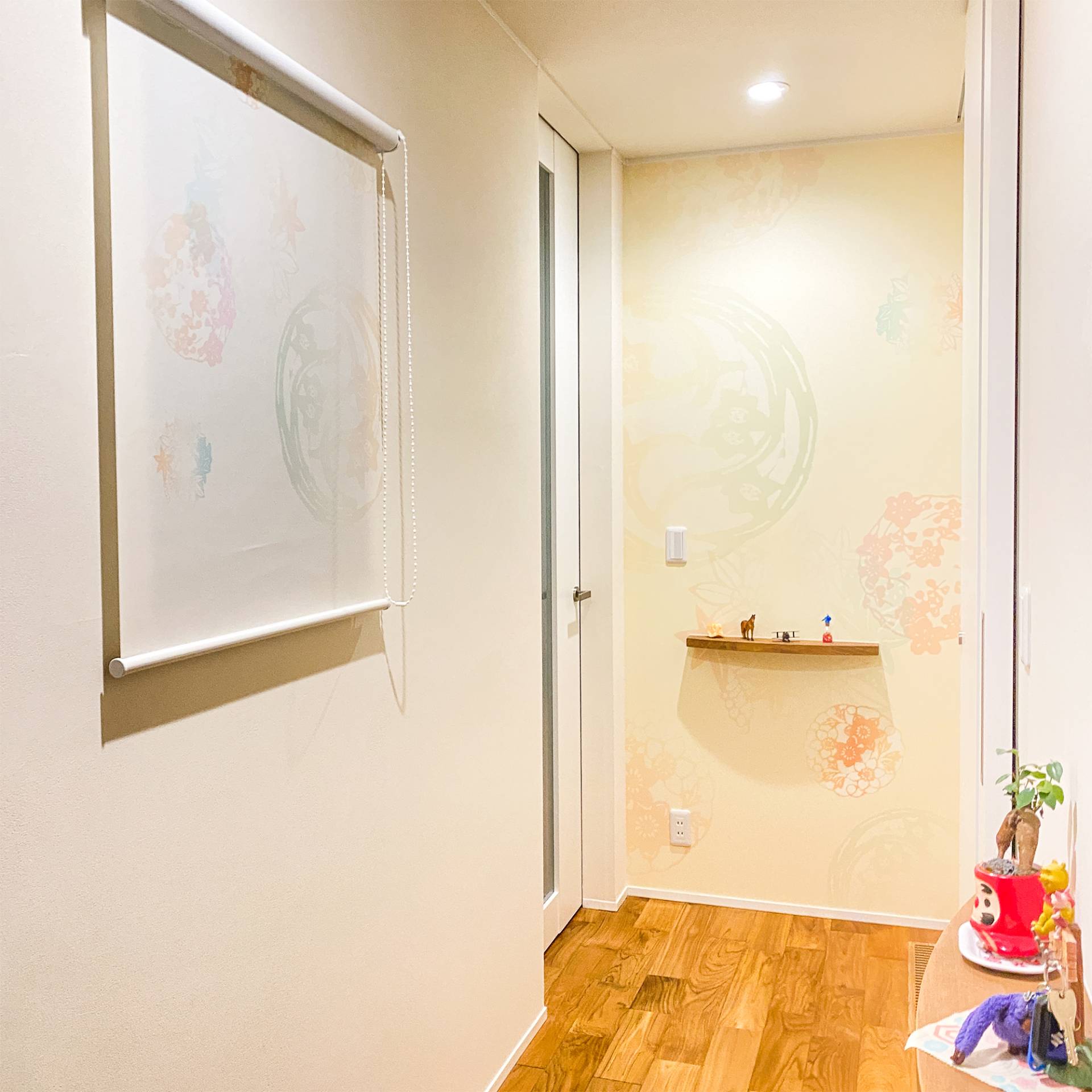 壁面のデザインと同じ柄でロールスクリーンの制作も可能です。