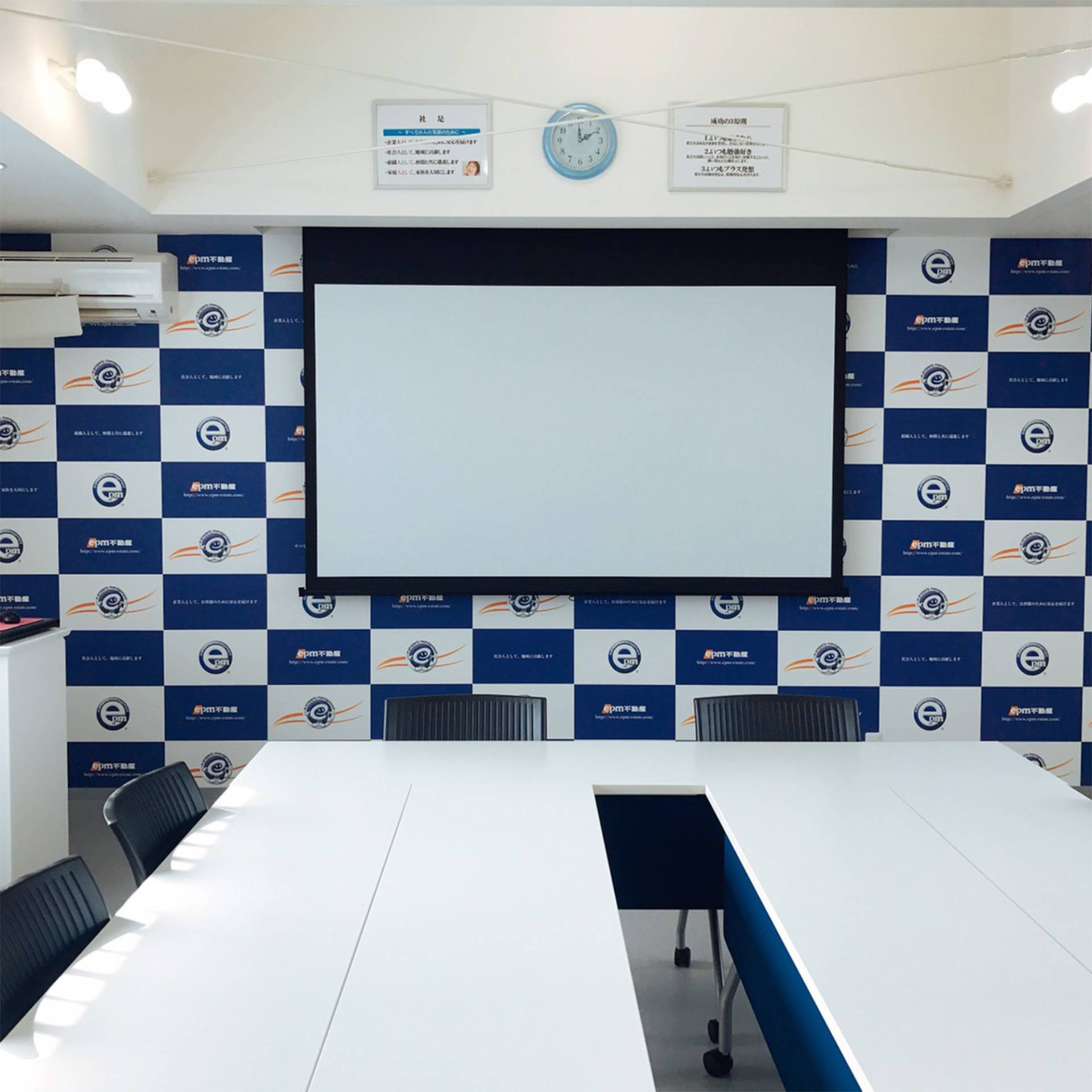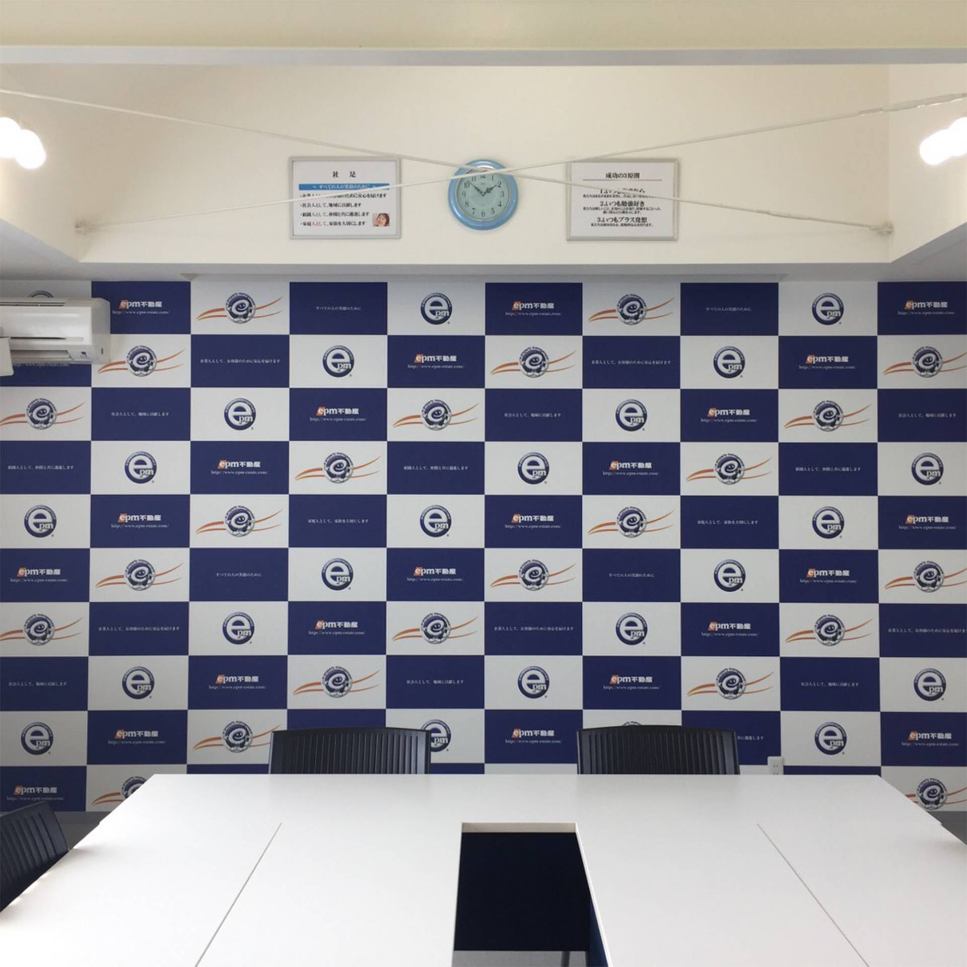 会社ロゴ(2種類)と、社是をちりばめて、コーポレートカラーである紺色をベースにデザイン。