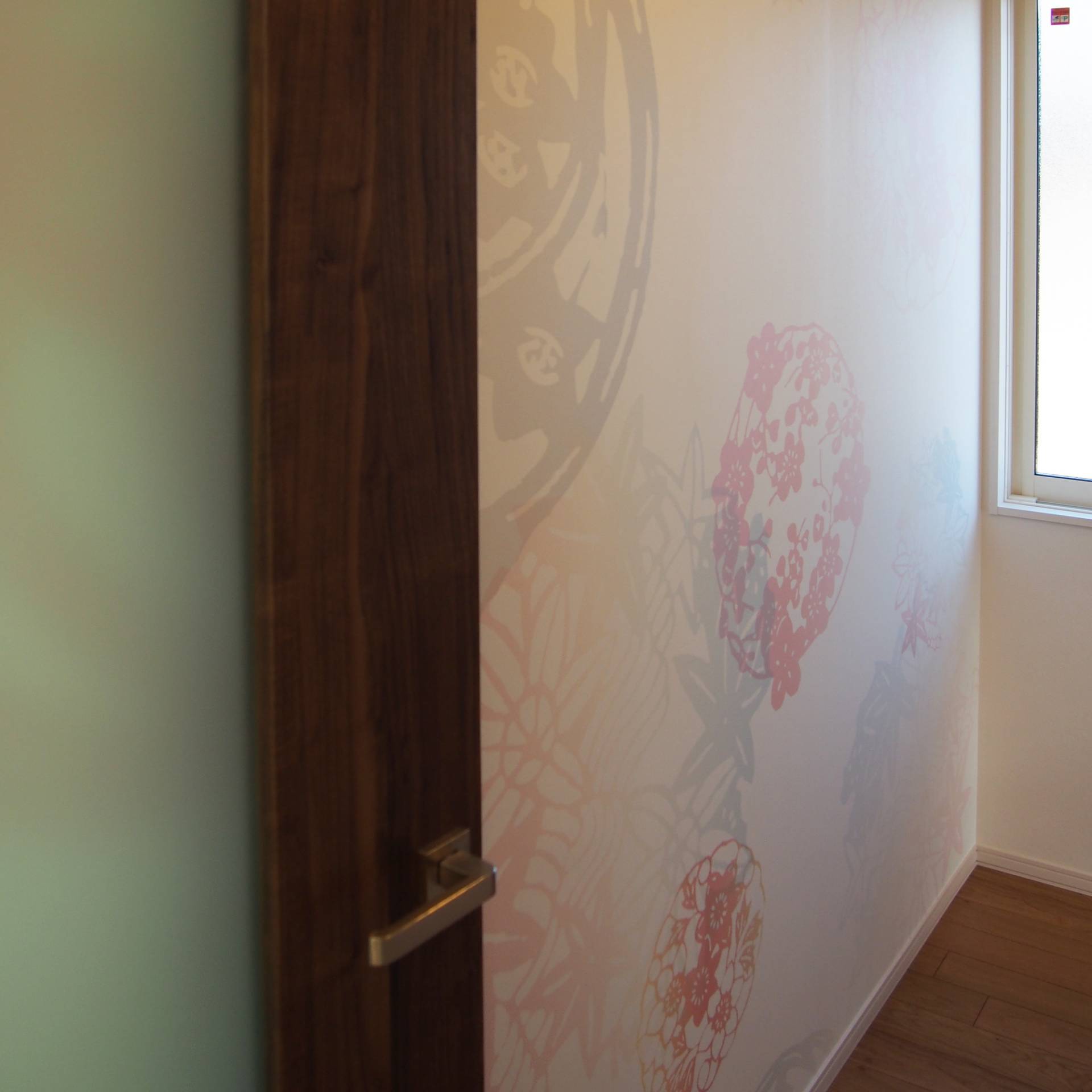 新築の壁面に弊社のオリジナルデザインクロスを使用して頂きました。