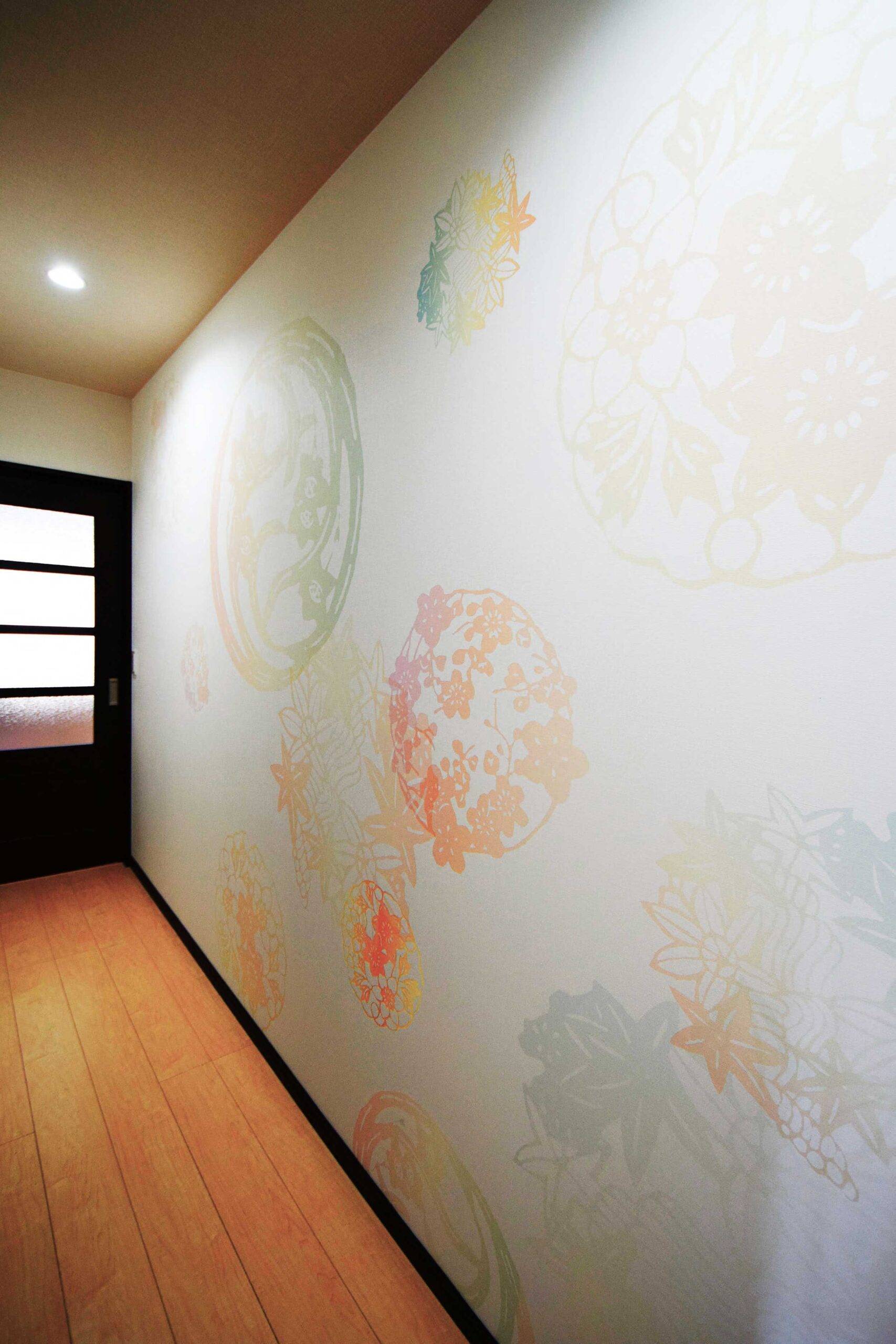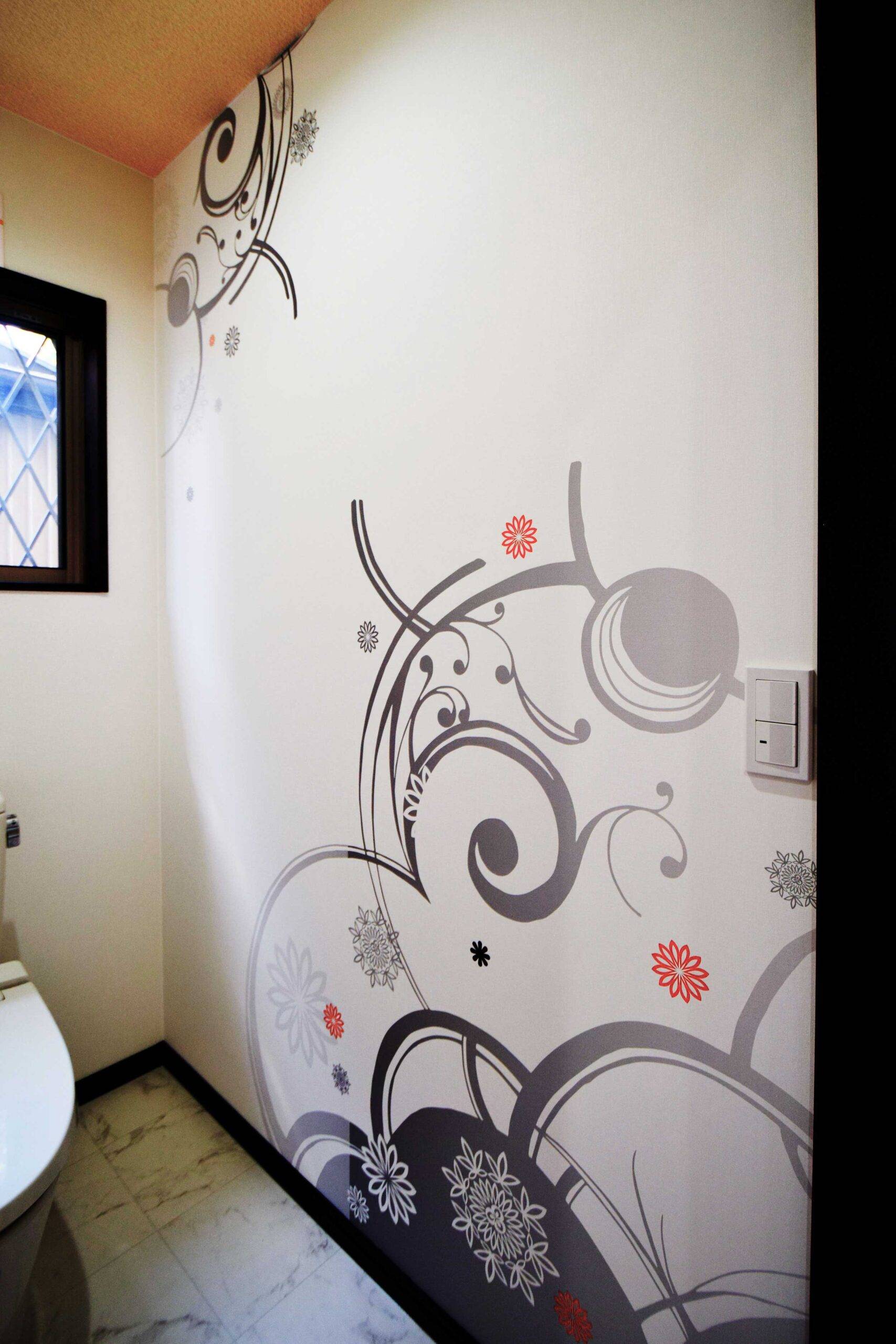 廊下とトイレの壁面へ弊社のデザインクロスを施工して頂きました。