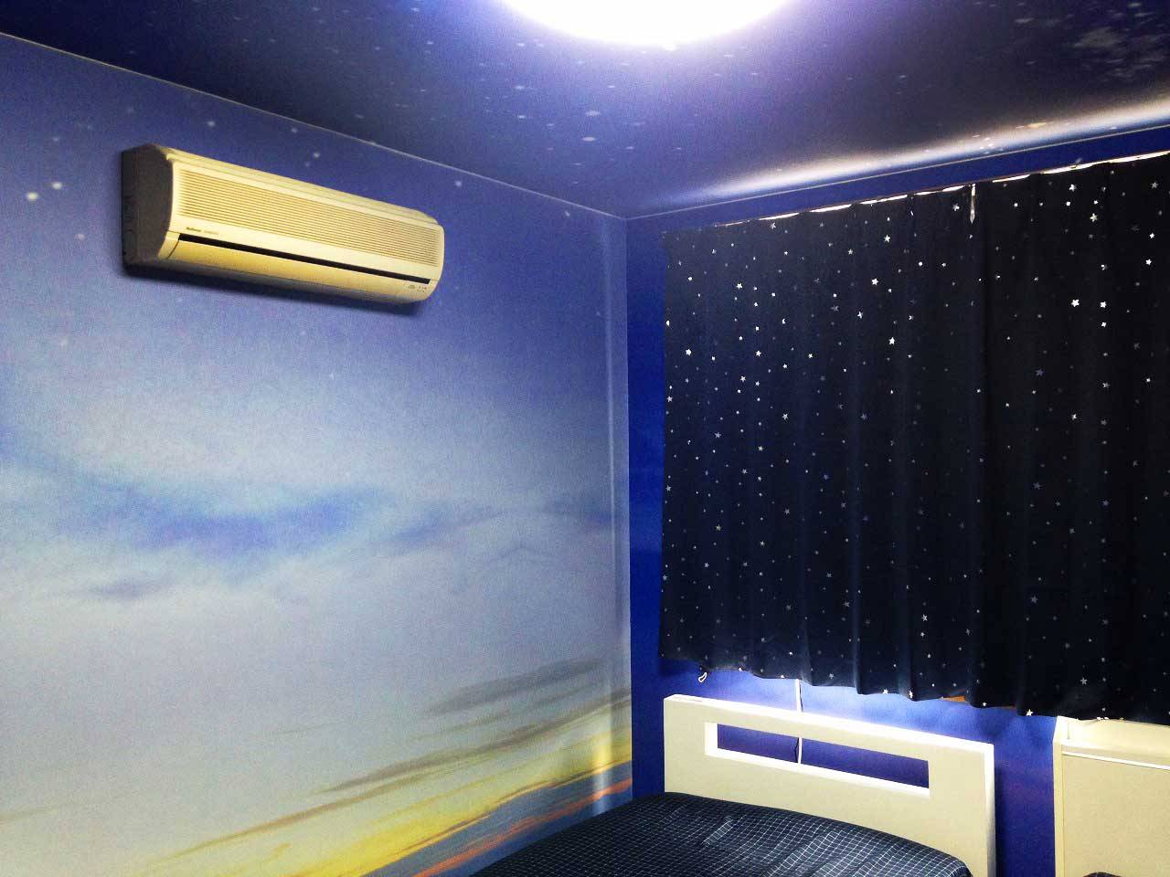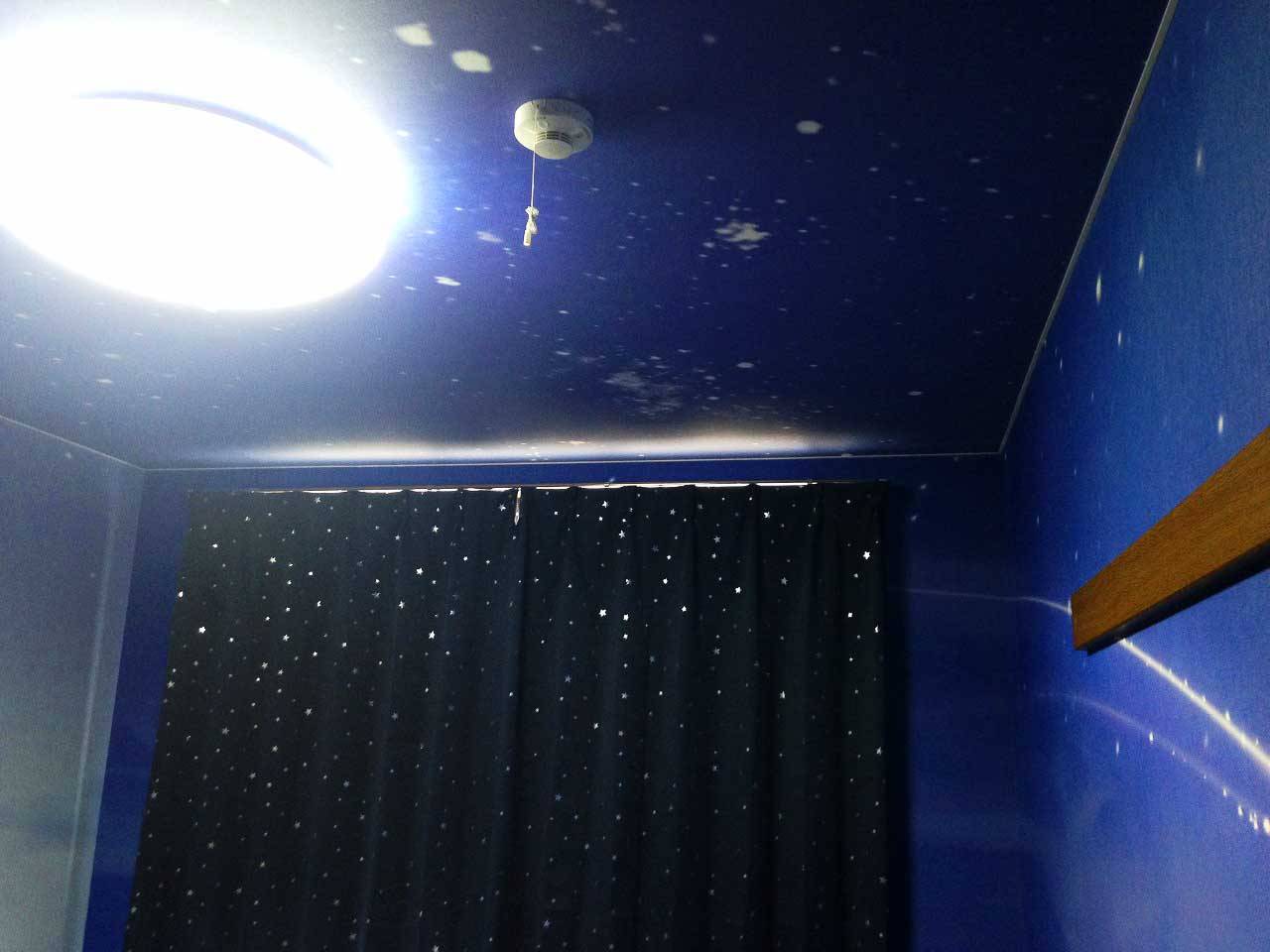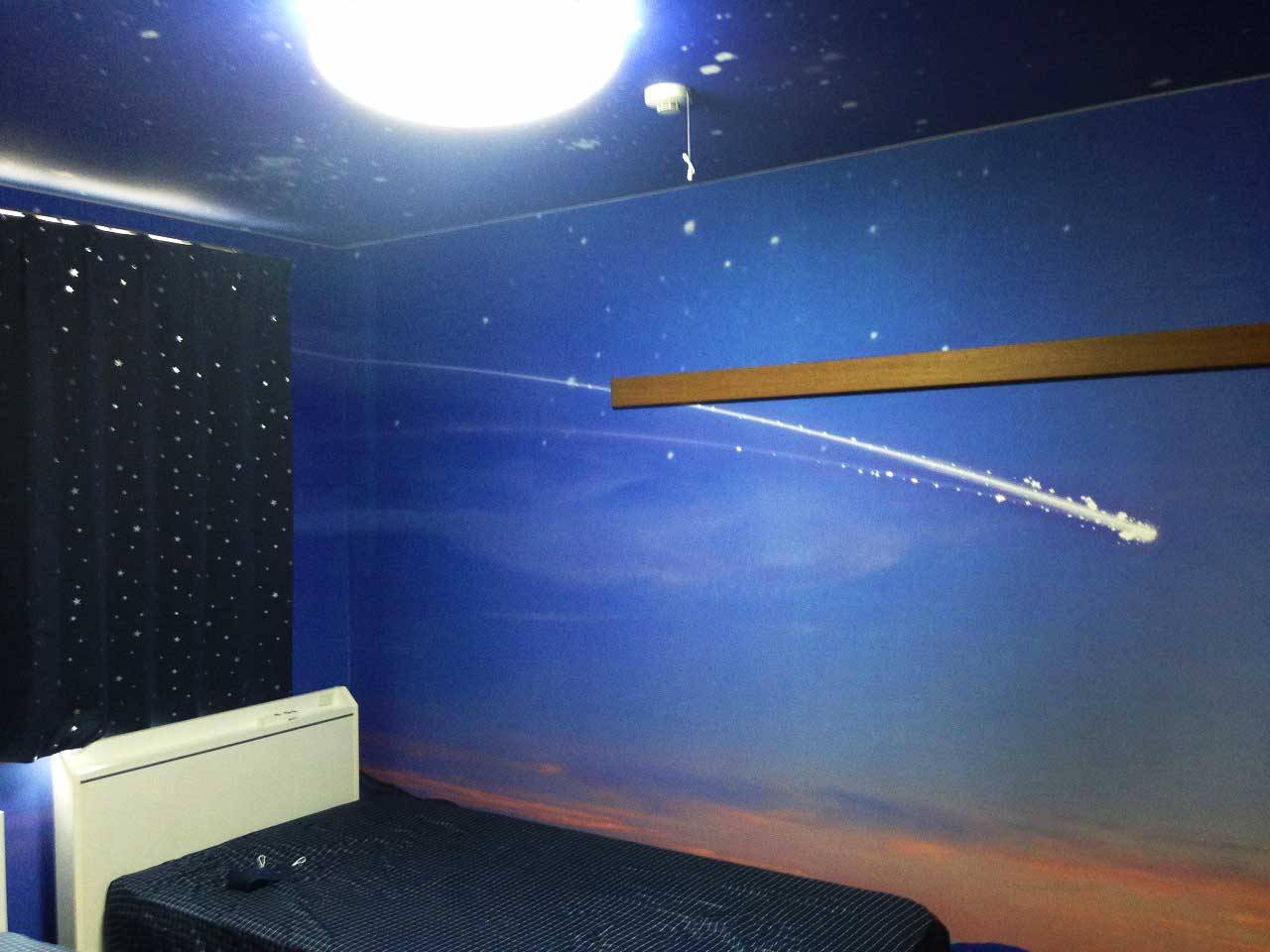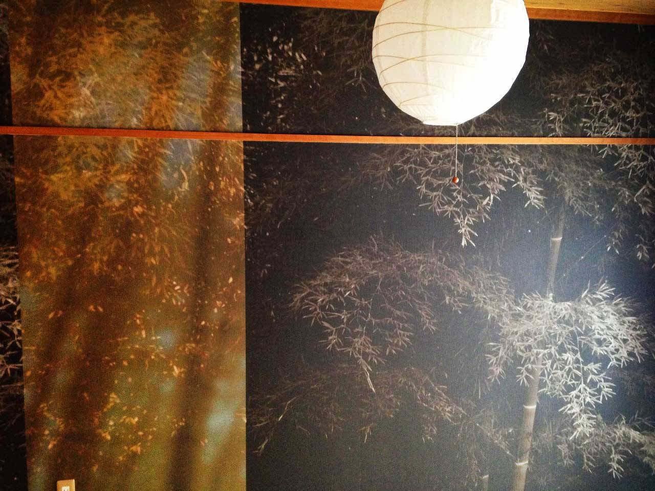 4壁面+天井への施工です。 とても幻想的で神秘的な寝室になっております。 お部屋全面の施工は迫力が違いますね! また和室の施工もして頂きました。とても個性的でクールな和室になっているかと思います。 ご注文ありがとうございました!!