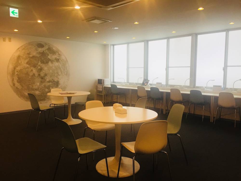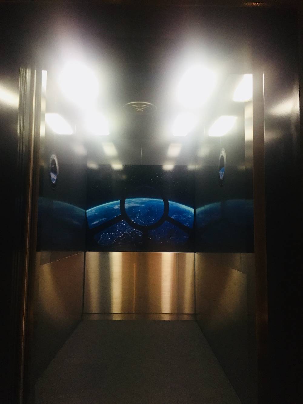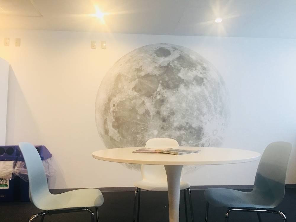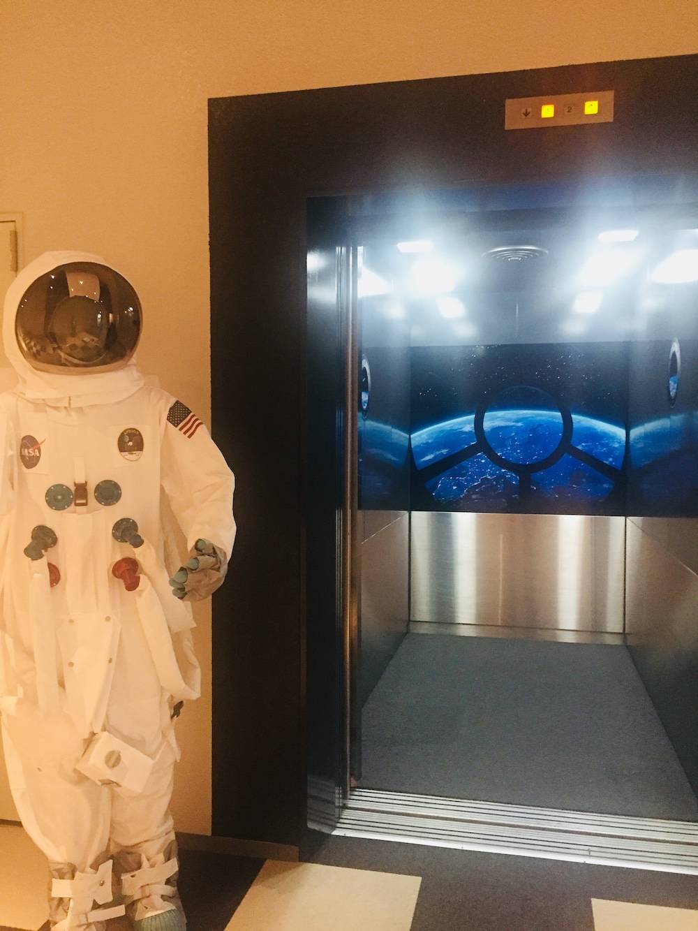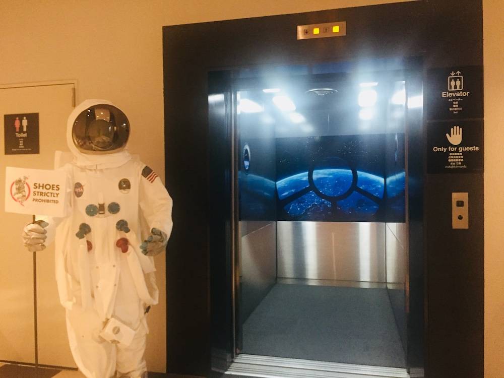 宇宙ステーションをコンセプトにしたホテルに月の壁紙と宇宙船から見た地球のフィルムをご使用頂きました!